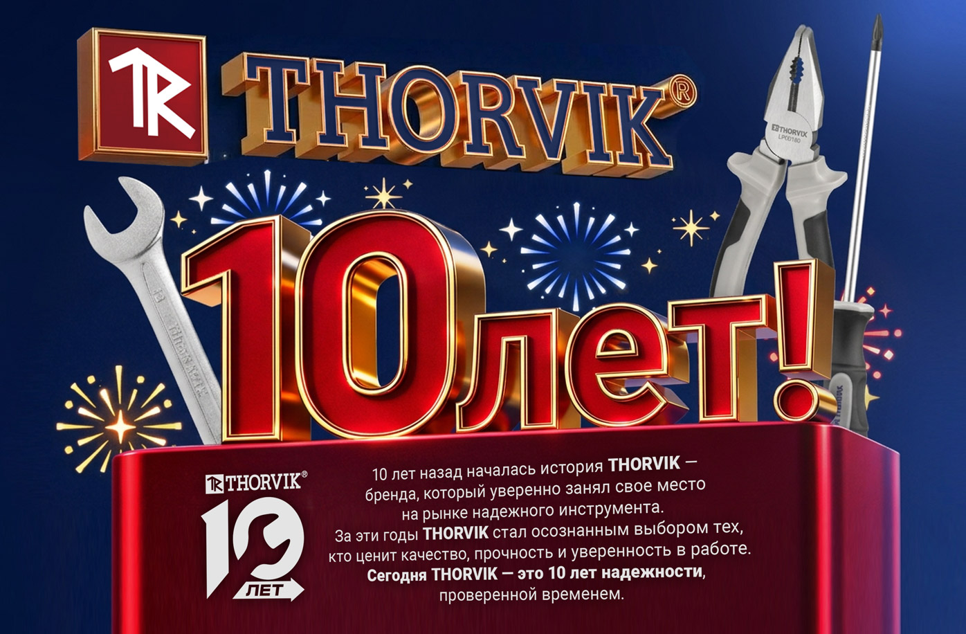 7 апреля бренду THORVIK исполняется 10 лет. За это время THORVIK прошел путь от новой торговой марки до узнаваемого бренда надежного инструмента, которому доверяют профессионалы и те, кто осознанно выбирает качество, практичность и уверенность в результате.МЫ УМЕЕМ: