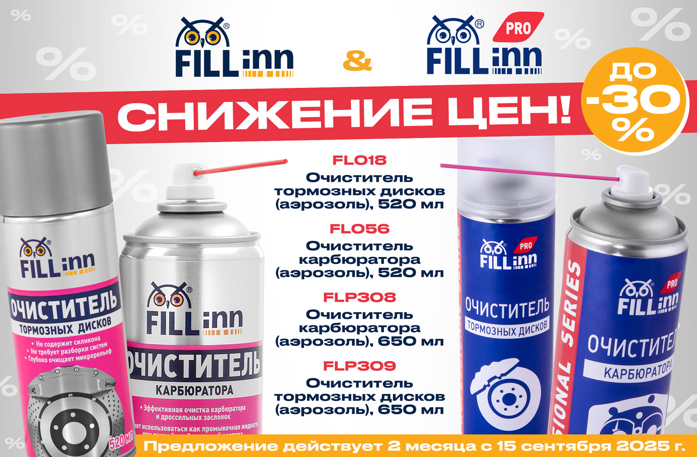 С 15 сентября 2025 года установлены новые цены на ряд ключевых продуктов линейки автохимии FILL INN.