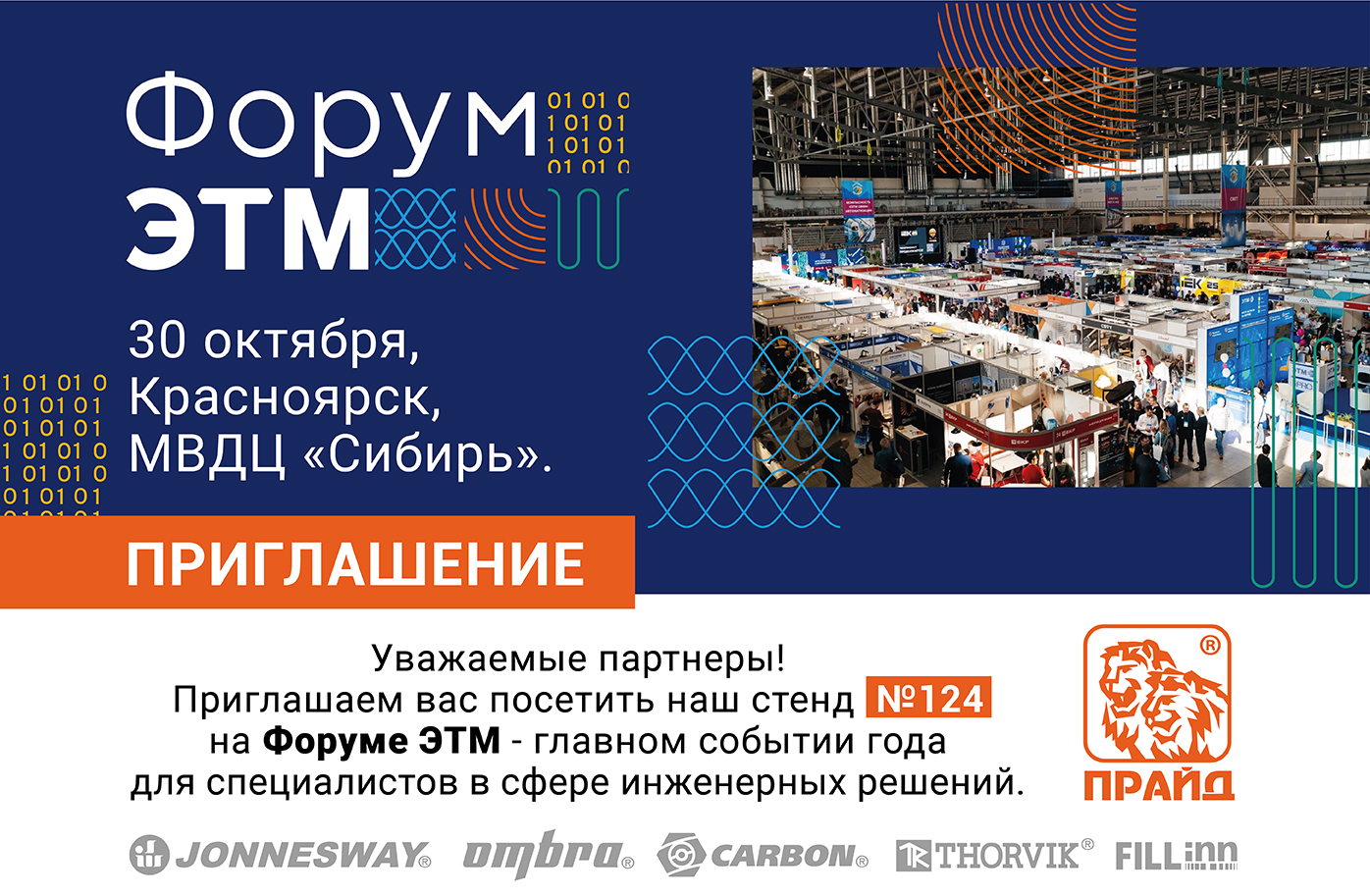 30 октября в МВДЦ "Сибирь" состоится одно из самых значимых событий рынка инженерных систем — Форум ЭТМ, в котором Прайд примет участие.