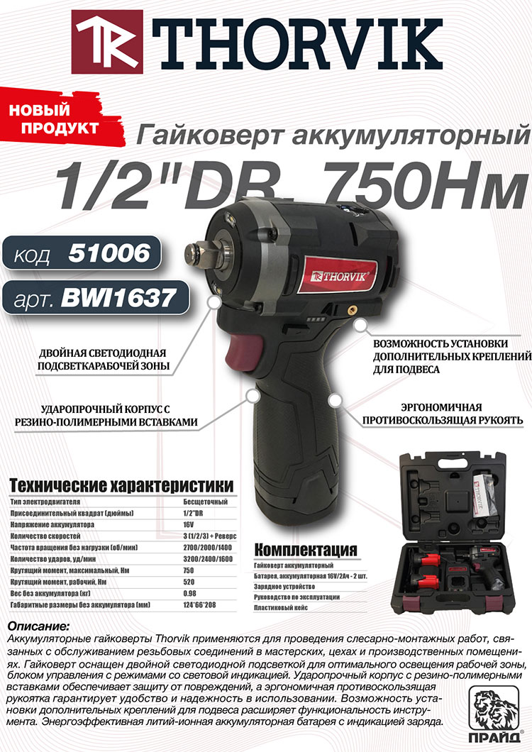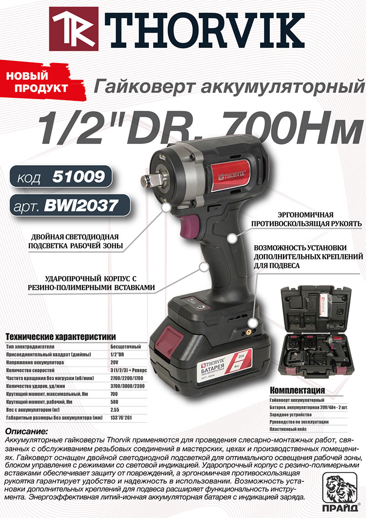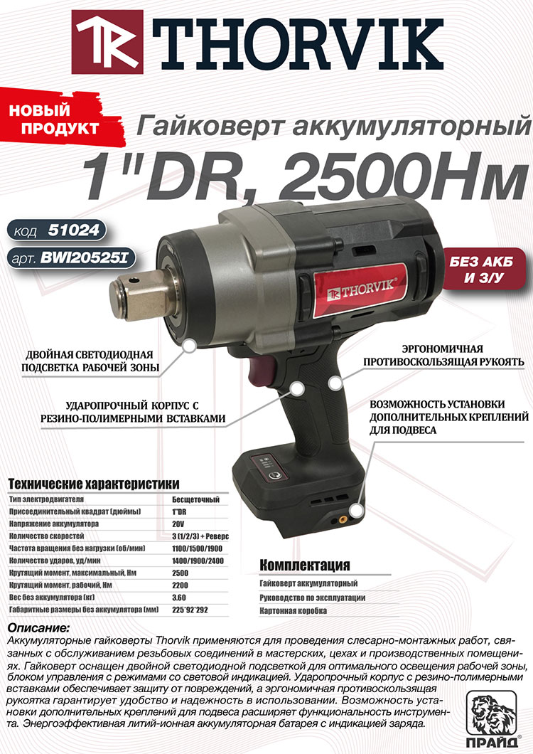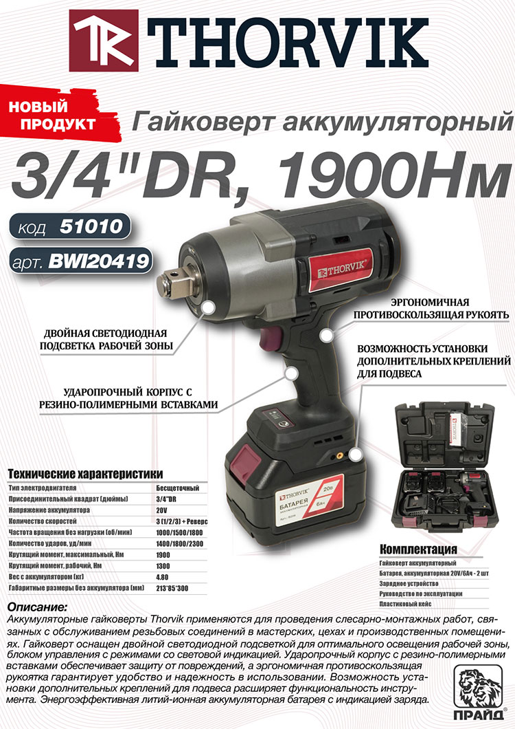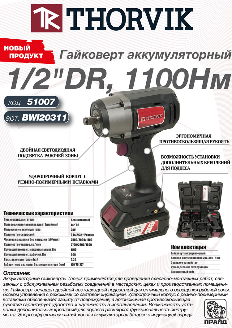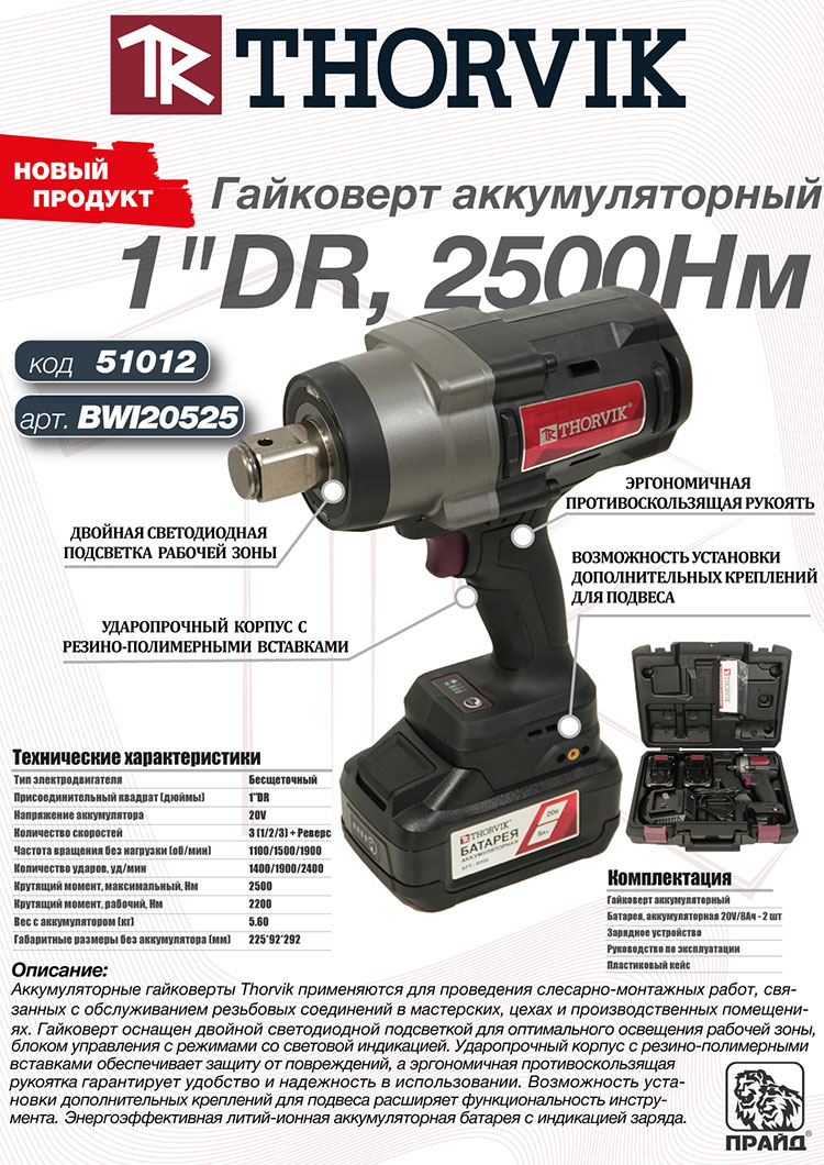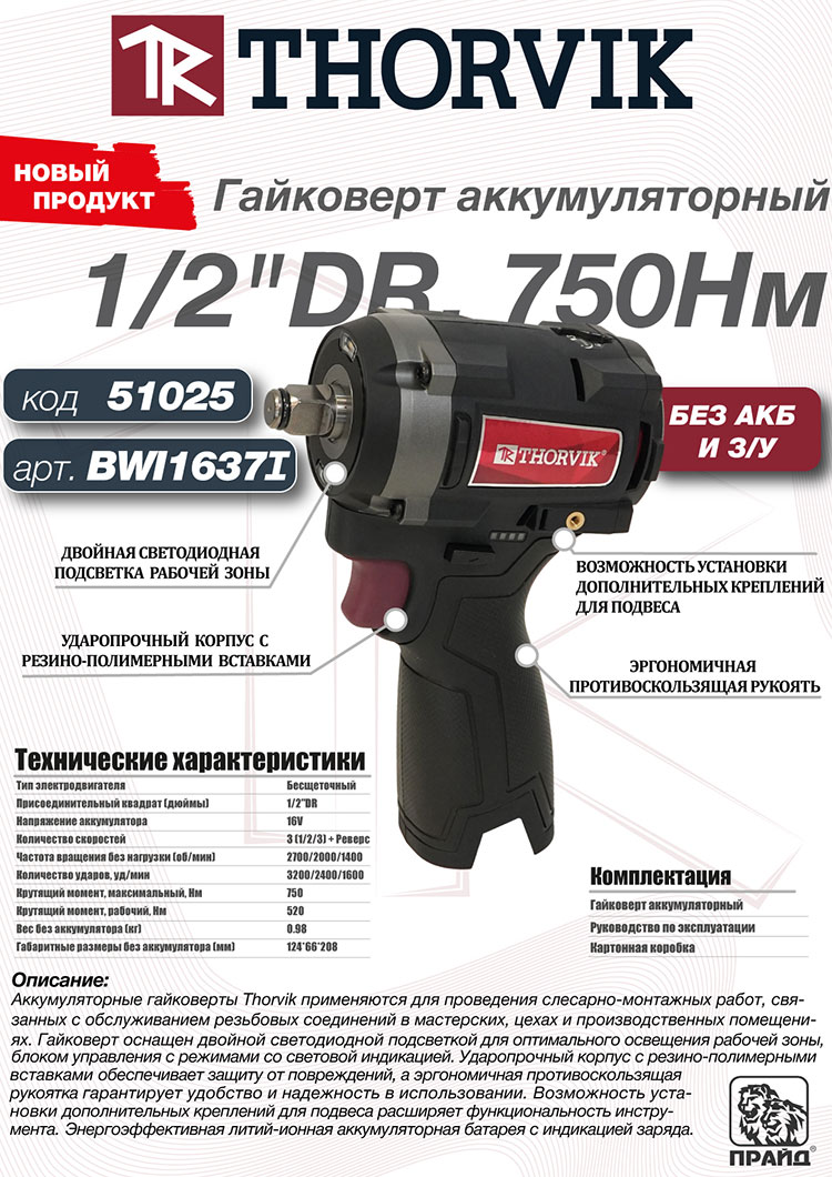 Новая линейка аккумуляторных гайковертов Thorvik по ссылке тут!