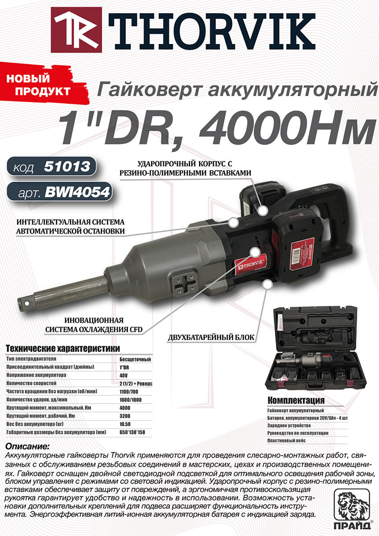 Новые аккумуляторные гайковерты разработаны с акцентом на производительность, надежность и удобство обслуживания. Thorvik расширил линейку решений, чтобы каждый специалист мог подобрать инструмент под свои задачи — от мобильных работ до ежедневной высокой нагрузки.