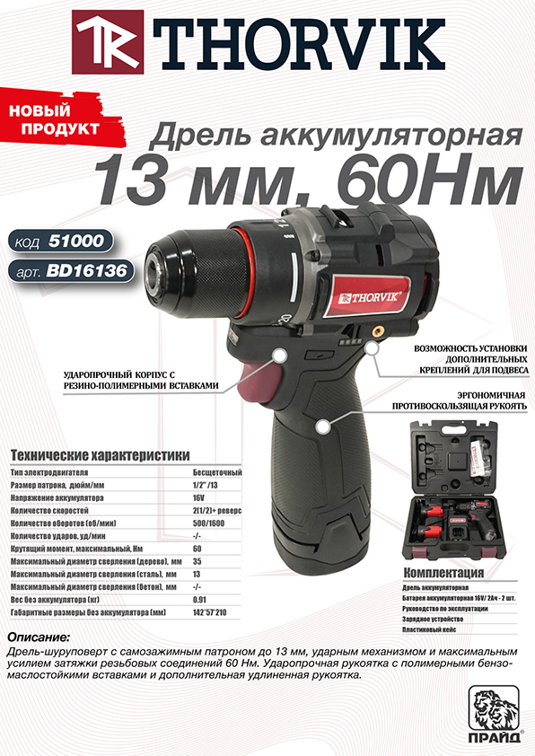 Новые аккумуляторные дрели THORVIK — это результат многолетнего опыта и тесного сотрудничества с ведущими производителями. Мы сделали все, чтобы наши инструменты стали надежными помощниками в любой задаче. Удобство, мощность и долговечность — ключевые характеристики, на которые мы ориентировались при разработке.